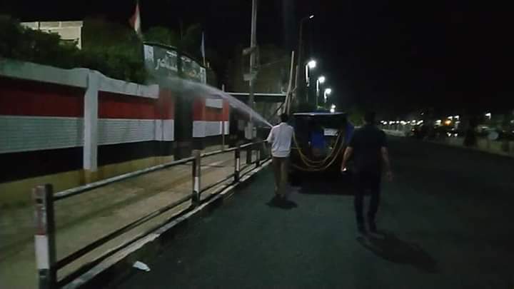 حيث تابع مساء اليوم المحاسب / عادل عبد الكريم عبد العال .. رئيس مركز ومدينة المحمودية حملة تطهير وتعقيم بشوارع المدينة باشراف أ/ طارق النحال ..نائب رئيس المدينة وفريق العمل بإدارة الأزمات بإشراف أ/ سامى شرف وأ/ حمدى عوض حيث تم تطهير وتعقيم شوارع المدينة وشملت رش وتطهير لشوارع ( صبرى القاضى .. المركز .. النادى الإجتماعى .. والرشيدية ..ومنطقة المدارس ..الادارة التعليمية ..قصر الثقافة ..الدلتا ..لبوسطة ) وذلك ضمن خطة الدولة الشامله لحماية المواطنين من أية تداعيات محتملة لفيروس كورونا المستجد .
