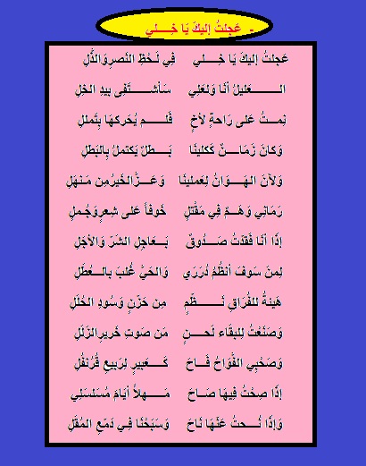 عَجلتُ إليكَ يَا خِـــــلي *** فِي لَـحْظِ النَصرِوَالذُّلِ