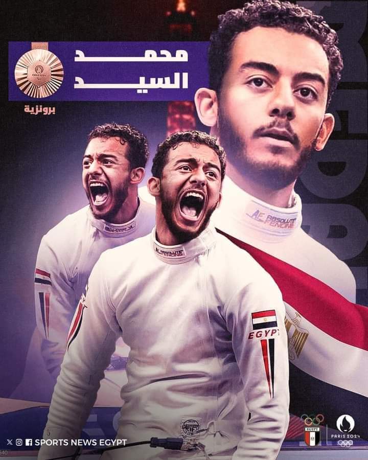 2024 بعد فوزه بالميدالية البرونزية بعد تغلبه في مباراة المركز الثالث المثيرة علي بطل المجر تيبور أندرا سيفي المصنف السادس عشر عالميٱ في منافسات سيف المبارزة ليبدأ مشوار الأبطال المصريين المنافسين في هذه الدورة في مختلف الألعاب الأوليمبية حيث تعد البعثة المصرية هي الأضخم بالنسبة للدورات الأوليمبية السابقة