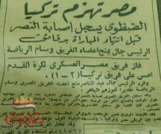 فى منتصف الخمسينات من القرن العشرين جمعت مباراة كرة قدم بين منتخب مصر العسكرى ومنتخب تركيا العسكرى فاز خلالها المنتخب المصرى العسكرى على منتخب تركيا العسكرى بهدف من تصويبه للاعب النادى المصرى البورسعيدى والنادى الأهلى المصرى ومنتخب مصر الشهير الكابتن محمد التابعى الشهير بـــ الضظوى
