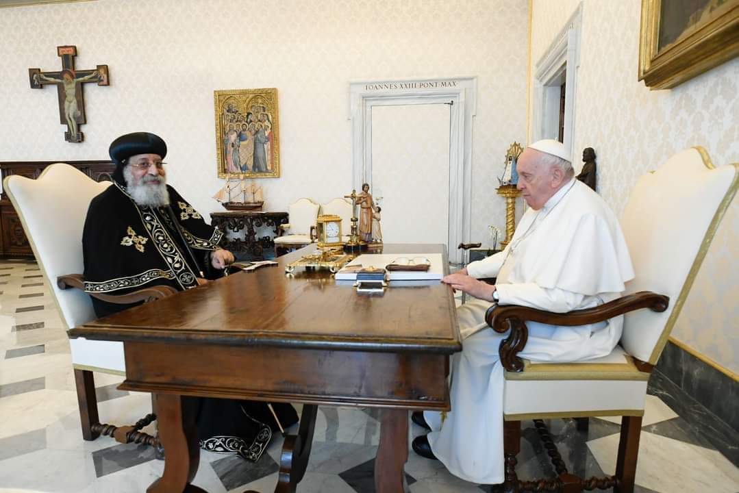 عقد صاحبا القداسة البابا تواضروس الثاني، بابا الإسكندرية وبطريرك الكرازة المرقسية، والبابا فرنسيس، أسقف روما وبابا الڤاتيكان، صباح اليوم اجتماعًا ثنائيًّا مغلقًا بالمكتب البابوي في القصر الرسولي بالڤاتيكان.