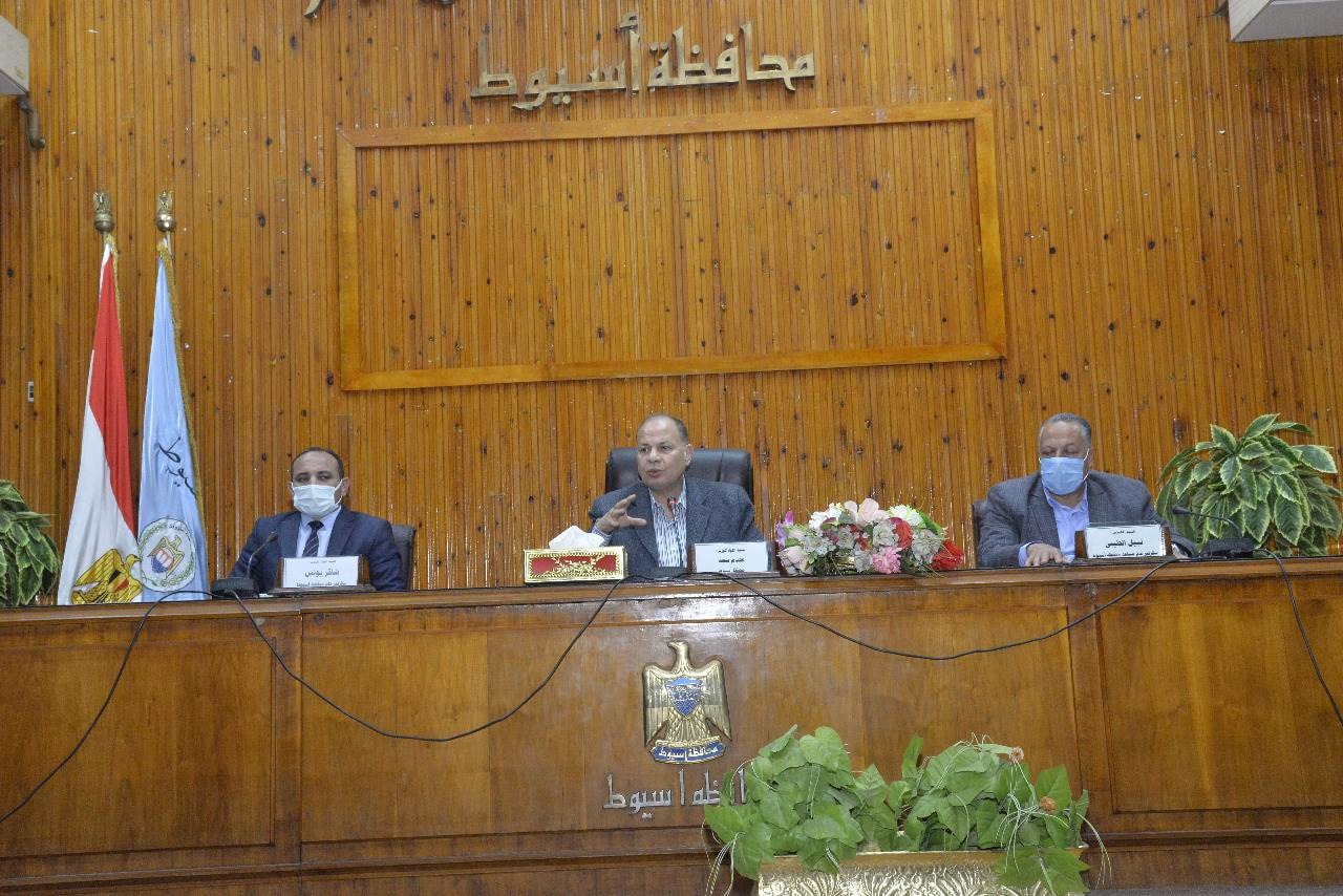 اجتماع مناقشة آليات تنفيذ المشروع القومي لتطوير الريف المصري بعدد 149 قرية بمحافظة اسيوط برئاسة سعد