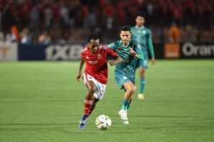 حتي نجح علي معلول ف استثمار تمريرة حسين الشحات ليصنع منها كرة عرضية دون توقف الكره الأمر الذي حرم لاعبي الرجاء من التمركز السليم مما مكن محمد عبد المنعم من تغعيلها إلي هدف ولا اروع ف الثواني الأخيرة من عمر الشوط الأول.