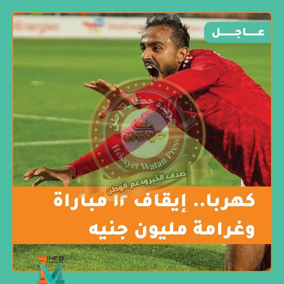 بعد أن تلقي النادي الاهلي خطاب إتحاد الكرة ولجنة الإنصباط الذي يفيد بتوقيع عقوبه قاسيه علي لاعبه محمود عبد المنعم كهربا إيقاف 12مباراه وغرامه مليون جنيه.