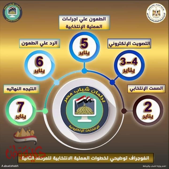 أعلنت اللجنة العليا لإنتخابات برلمان شباب مصر بوزارة الشباب والرياضة برئاسة الدكتور أشرف صبحي ، عن بدء التصويت الإلكتروني في الجولة الثانية لإنتخابات برلمان شباب مصر 2020-2021 علي مدار يومي الأحد والاثنين 3 و 4 يناير 2021 ، في( 57) دائرة إنتخابية داخل ( 110)مقر إنتخابي بمراكز الشباب بمشاركة( 10740)شاب وشابة أعضاء برلمان الشباب بمراكز الشباب ، ممن لهم حق الإدلاء بصوتهم خلال مجريات العملية الإنتخابية ،والمسجلين فى الإستمارة الالكترونية التى اطلقتها اللجنة العليا للإنتخابات ،وتجري انتخابات المرحلة الثانية في 13 محافظة (القاهرة ،القليوبية،الدقهلية،المنوفية،الغربية،كفرالشيخ،الشرقية،دمياط،بورسعيد،الإسماعيلية،السويس،شمال سيناء،جنوب سيناء )،للتنافس علي (298)مقعدا بواقع (144)مقدا للنظام الفردي و(154) مقعدا لنظام القوائم .