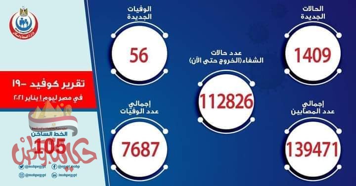 الصحة : تسجيل 1409 حالة إيجابية جديدة بفيروس كورونا.. و 56 حالة وفاة