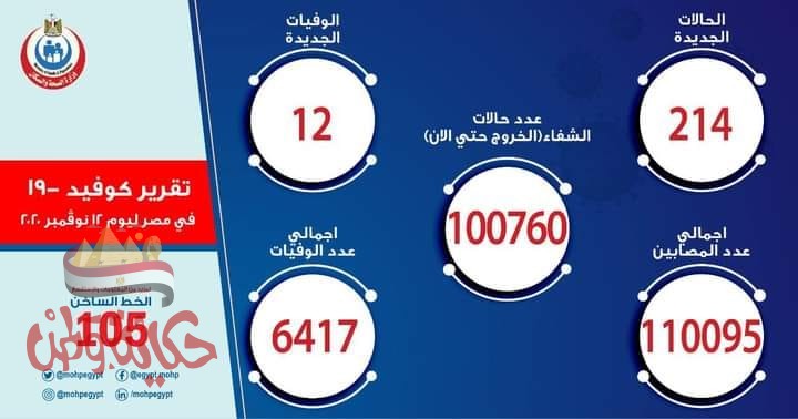 الصحة: تسجيل 214 حالة إيجابية جديدة لفيروس كورونا.. و 12 حالة وفاة