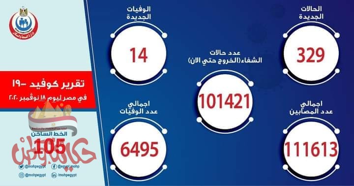 وأوضح الدكتور خالد مجاهد مستشار وزيرة الصحة والسكان لشئون الإعلام والمتحدث الرسمي للوزارة، أنه تم تسجيل 329 حالة جديدة ثبتت إيجابية تحاليلها معمليًا للفيروس، وذلك ضمن إجراءات الترصد والتقصي والفحوصات اللازمة التي تُجريها الوزارة وفقًا لإرشادات منظمة الصحة العالمية، لافتًا إلى وفاة 14 حالة جديدة.