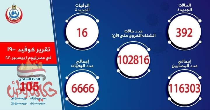 وذكر “مجاهد” أن إجمالي العدد الذي تم تسجيله في مصر بفيروس كورونا المستجد حتى اليوم الثلاثاء، هو 116303 حالات من ضمنهم 102816 حالة تم شفاؤها، و 6666 حالة وفاة.