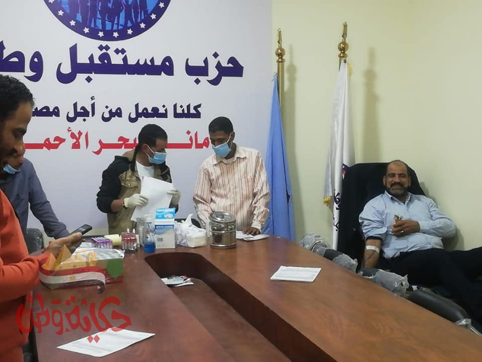 نظمت أمانة الشباب بحزب مستقبل وطن بالبحر الأحمر بقيادة هاني حمد أمين الشباب بالمحافظة حملة للتبرع بالدم بمقر الحزب بمدينة الغردقة في حضور قيادات الحزب بالمحافظة.