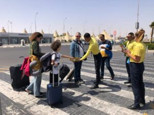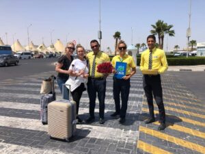 وكان فى استقبال الطائرة وفد من شركة تيز تور والذين انهوا اجراءات الوصول فى دقائق معدودة