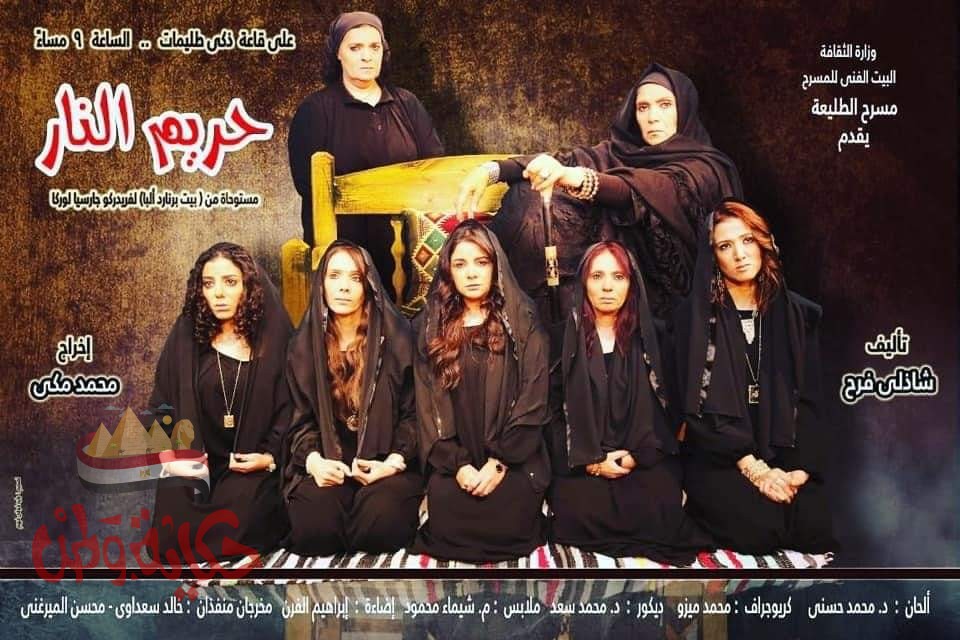 عن نص بيت برنارد ألبا للكاتب الأسباني فدريكو جارسيا لوركا، بطولة عايدة فهمي، منال ذكي، عبير لطفي، نشوى إسماعيل، نسرين يوسف، أميرة كامل ،كريستين عاطف، ديكور محمد سعد، أزياء شيماء محمود، موسيقى وألحان محمد حسني، مصمم إستعراضات محمد ميزو، مصمم إضاءة إبراهيم الفرن، العرض من تأليف شاذلي فرح وإخراج محمد مكي.