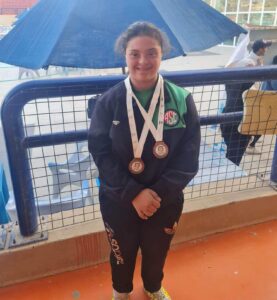 فلقد حققت روان عمر المركز الثالث في 100م حر واخر 100م ضهر.