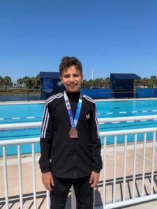 بينما حصل البطل* مروان الشناوي” على المركز الثالث والميدالية البرونزية في سباق 50 متر سباحة بزعانف المونو