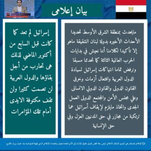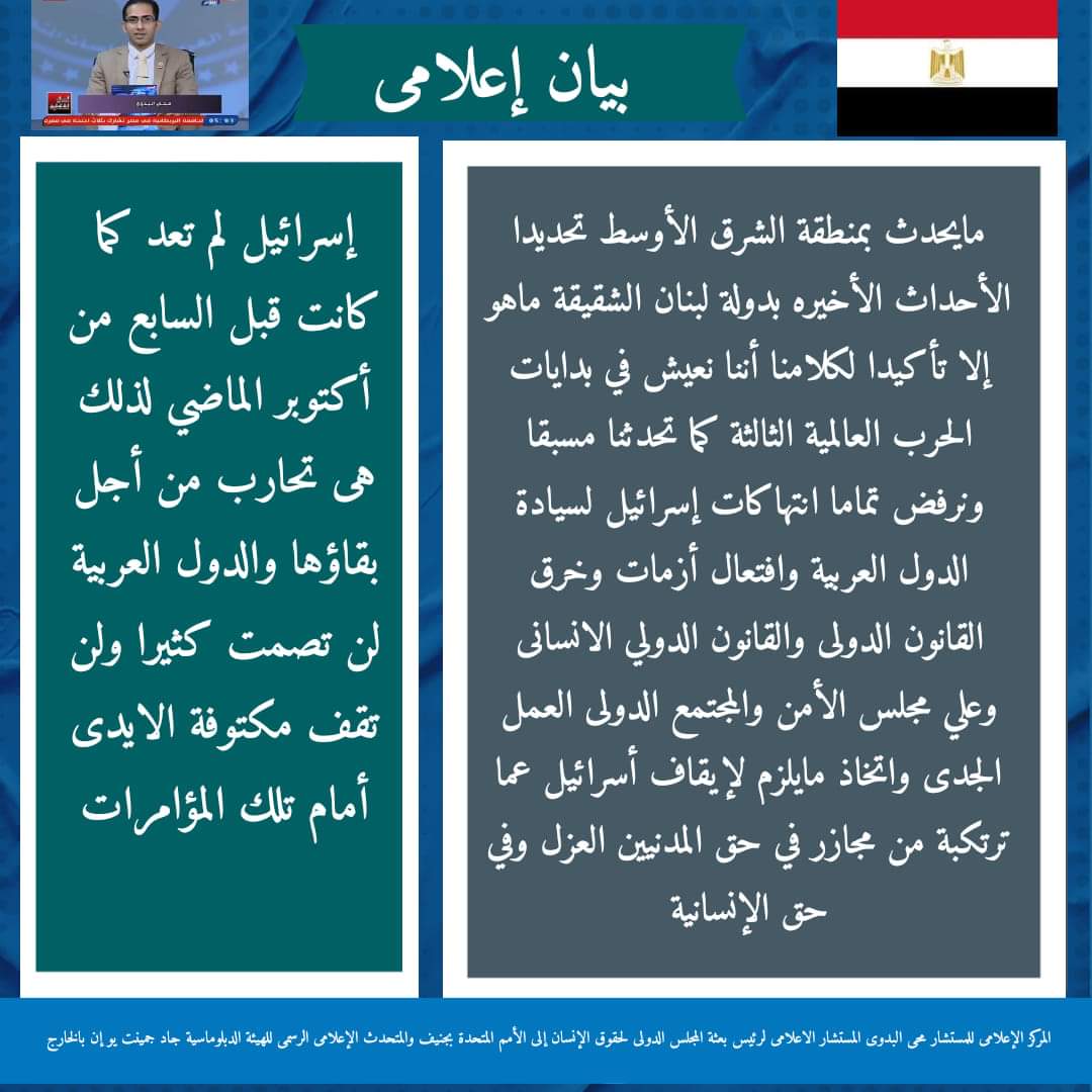 بيان إعلامى للمستشار محى البدوى يحذر من خطورة التصعيد علي الجبهه اللبنانية