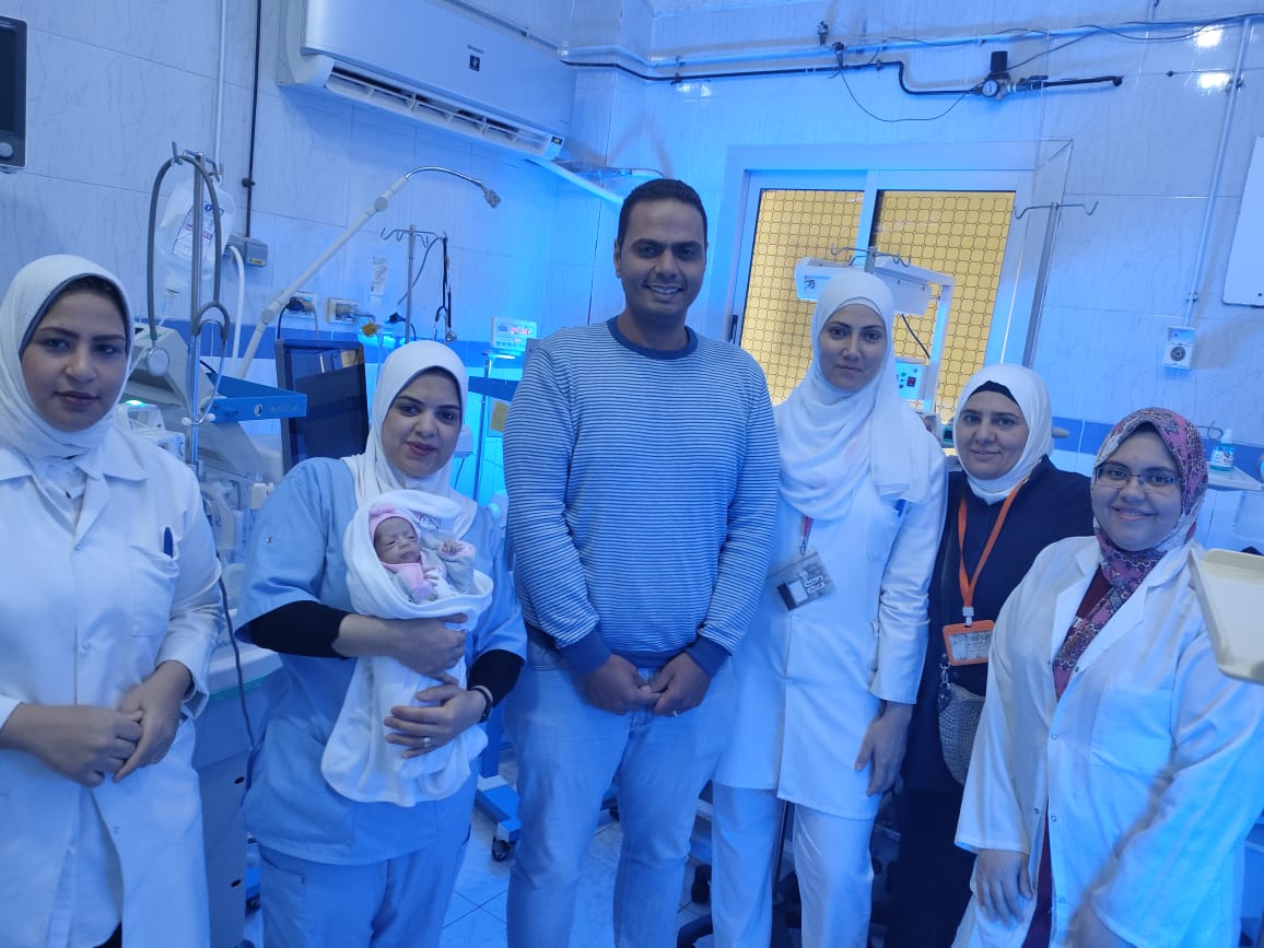 واضافت *د/”امل الشبراوى”* مدير مستشفى العوضى أن المولودة تم دخولها قسم المبتسرين بالمستشفى عقب ولادتها بمستشفى خاص كتؤام تاني وبوزن ٩٠٠ جرام ليتم تعافيها بعد ٤١ يوم من العمل المتصل علي مدار الساعه من فريق عمل متخصص بقسم المبتسرين برئاسة *د.احمد مجدى* رئيس قسم الاطفال و حديث الولاده وفريق عمل متكامل من أطباء الاطفال و المبتسرين و التمريض و الخدمات الطبية المعاونة بالاضافة الى فريق الصيدلة الإكلينيكية و تم نقل دم و بلازما و تم اعطاءها العلاج اللازم لها لتتم يومها ال ٤٢ بمنزل أسرتها بعد خروجها بحمد الله بصحه جيده ..