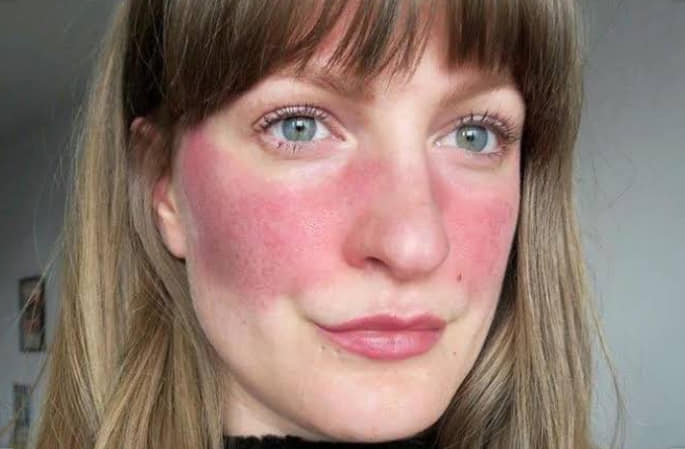 تكون عرضه دائمه للإحمرار والحكه مع ظهور بقع حمراء وحبوب بها فهى سريعه التأثر بعوامل الجو وتغيراته كذلك الشمس وبعض أنواع المستحضرات التجميليه والعطور التى تزيد من الحساسيه ولابد من إختيار مرطبات وكريمات أساسية ومواد تنظيف مناسبه للبشره الحساسه ويفضل أن تكون بإستشاره طبيب .