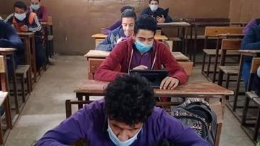 اليوم الأول لــ طلاب الصف الاول الثانوي لأداء امتحانات مادتي اللغة العربية والاحياء ، شعاره البحث عن السيستم
