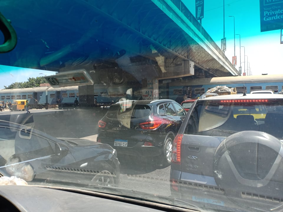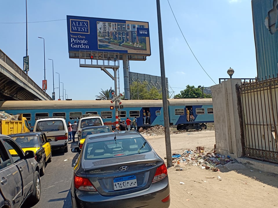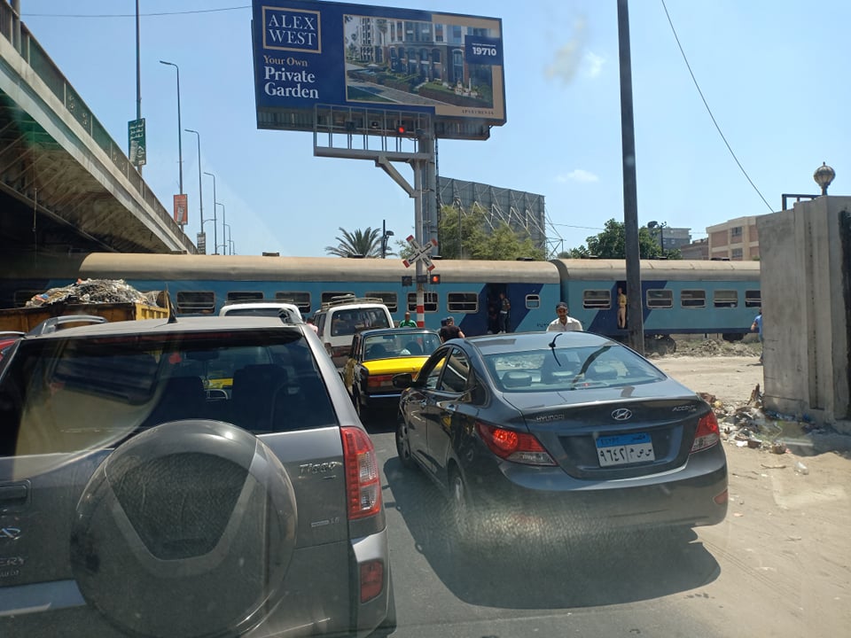 توقف قطار مطروح بالاشارة يؤدي إلي توقف حركة السيارات وتكدس مروري