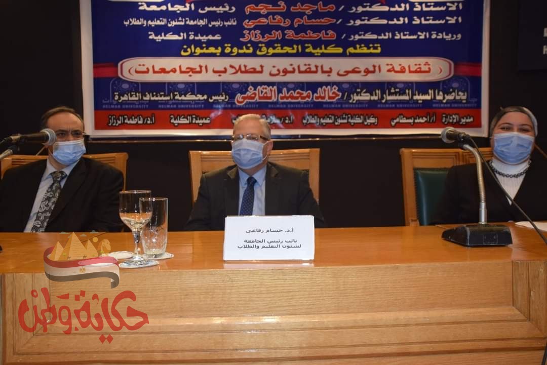 نظمت كلية الحقوق جامعة حلوان ندوة “حول ثقافة الوعي بالقانون لطلاب الجامعات”، وذلك تحت رعاية الأستاذ الدكتور ماجد نجم رئيس الجامعة، والأستاذ الدكتور حسام رفاعي نائب رئيس الجامعة، والاستاذة الدكتورة فاطمة الرزاز عميد الكلية، وبحضور وكلاء كلية الحقوق وعدد كبير من السادة أعضاء هيئة التدريس بالكلية والطلاب.