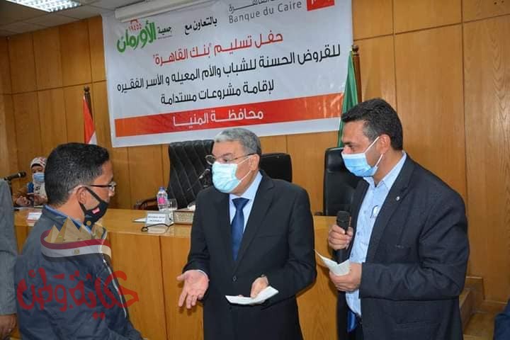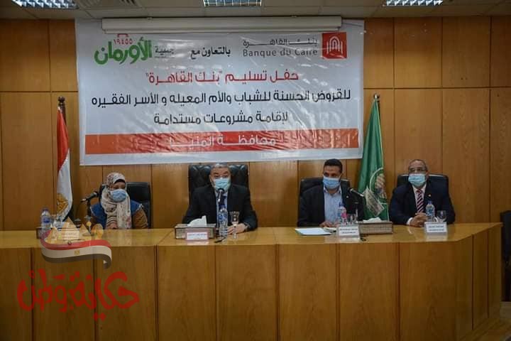 سلم اللواء أسامة القاضي محافظ المنيا، اليوم، 98 شيكا للفئات والاسر الأكثر احتياجا بعدد من القرى وذلك لتنمية المشروعات متناهية الصغر كمرحلة أولي، مقدمة من جمعية الأورمان بالتعاون مع بنك القاهرة ، في إطار الدور المجتمعي الذى تنفذه الجمعية في رفع المعاناة عن الأسر الأكثر احتياجاً ومحدودي الدخل من أبناء محافظة المنيا.