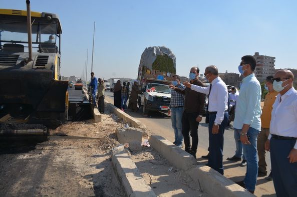 كما تابع اعمال رصف طريق شركات البترول في جميع قطاعاته وايضا أعمال رصف الجزر الوسطى والممشى ببلاط الانترلوك، موجها بزيادة عدد المعدات والعمال للانتهاء من المشروع.