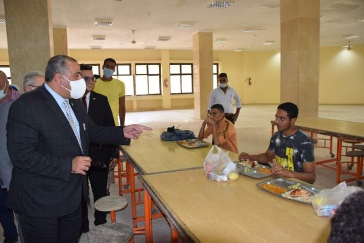 وقال إن هذه الجولة الميدانية بمطاعم المدن الجامعية تأتي في إطار الحرص علي الاطمئنان على سير العمل بهذه الأماكن الحيوية التي تتعلق براحة الطلاب خلال فترة إقامتهم بالمدينة الجامعية خلال العام الدراسي الجديد، مؤكدًا تطبيق كل الإجراءات الاحترازية والوقائية من فيروس كورونا، وارتداء العاملين للكمامات وتوزيع الوجبات الغذائية مغلفة في مواعيدها المحددة بالطريقة السليمة لمنع الازدحام.