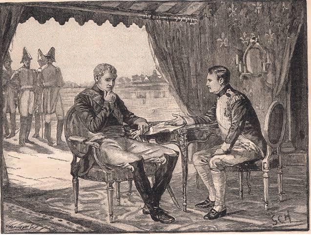 عام 1807: التوقيع على اتفاقية تيلسيت بين الإمبراطورية الفرنسية الإمبراطورية الروسية أثناء الحروب التي كان يشنها الامبراطور نابليون بونابرت والتي سميت بالحروب النابليونية.