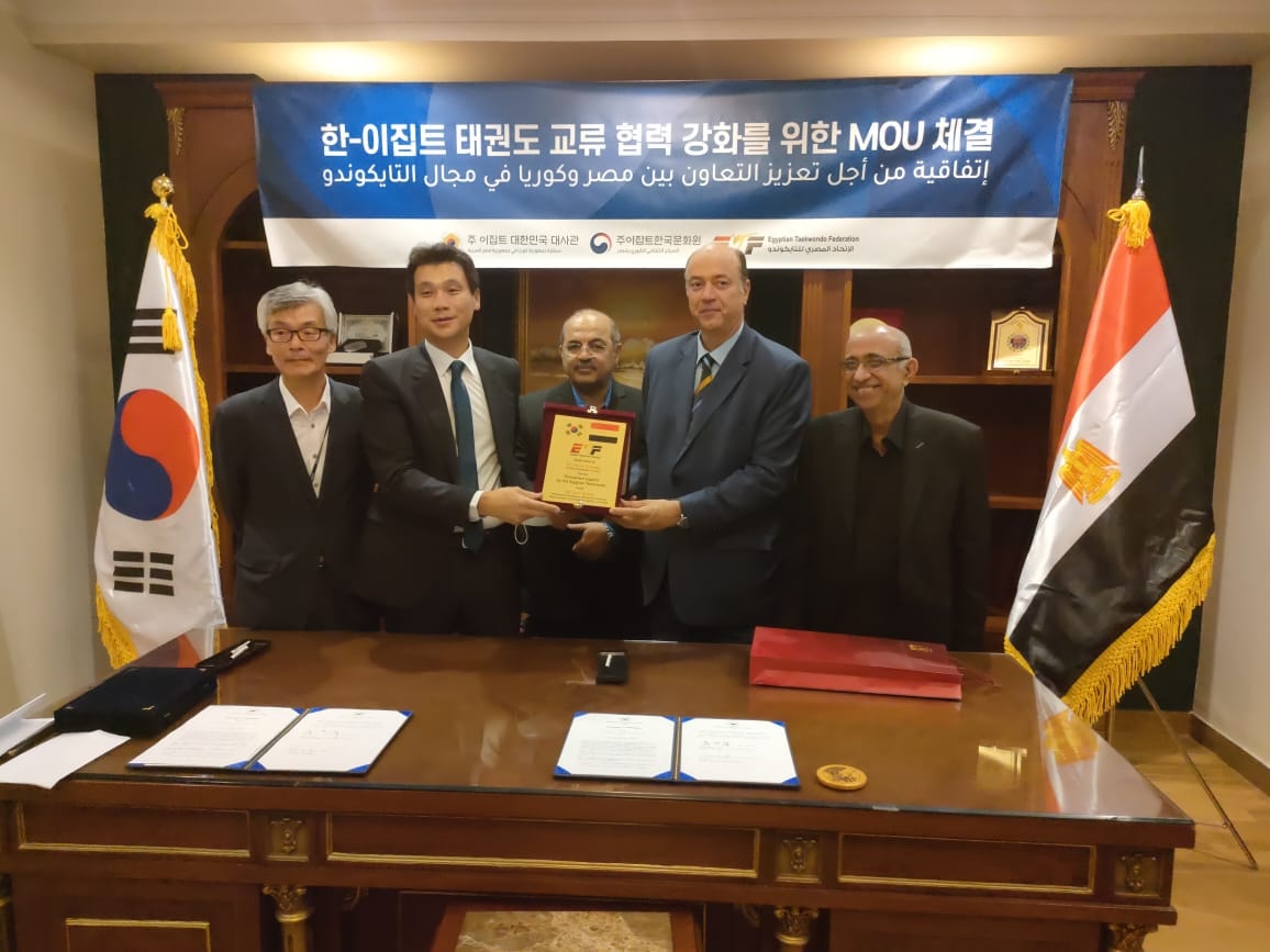 حطب يستقبل السفير الكورى ويشهد توقيع اتفاقية فى لعبة التايكوندو باللجنة الأوليمبية “
