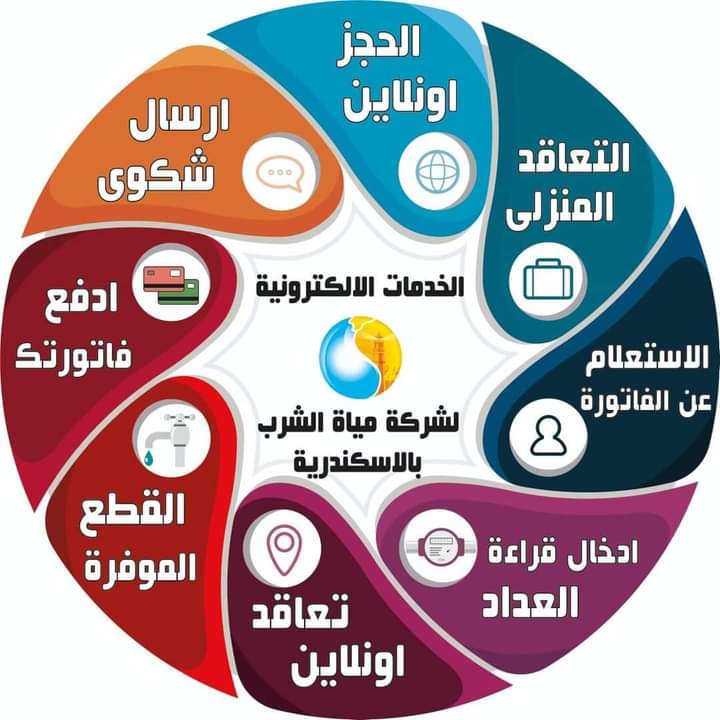 خدمات الكترونيه متاحه على البوابة الالكترونيه لشركة مياه الإسكندرية
