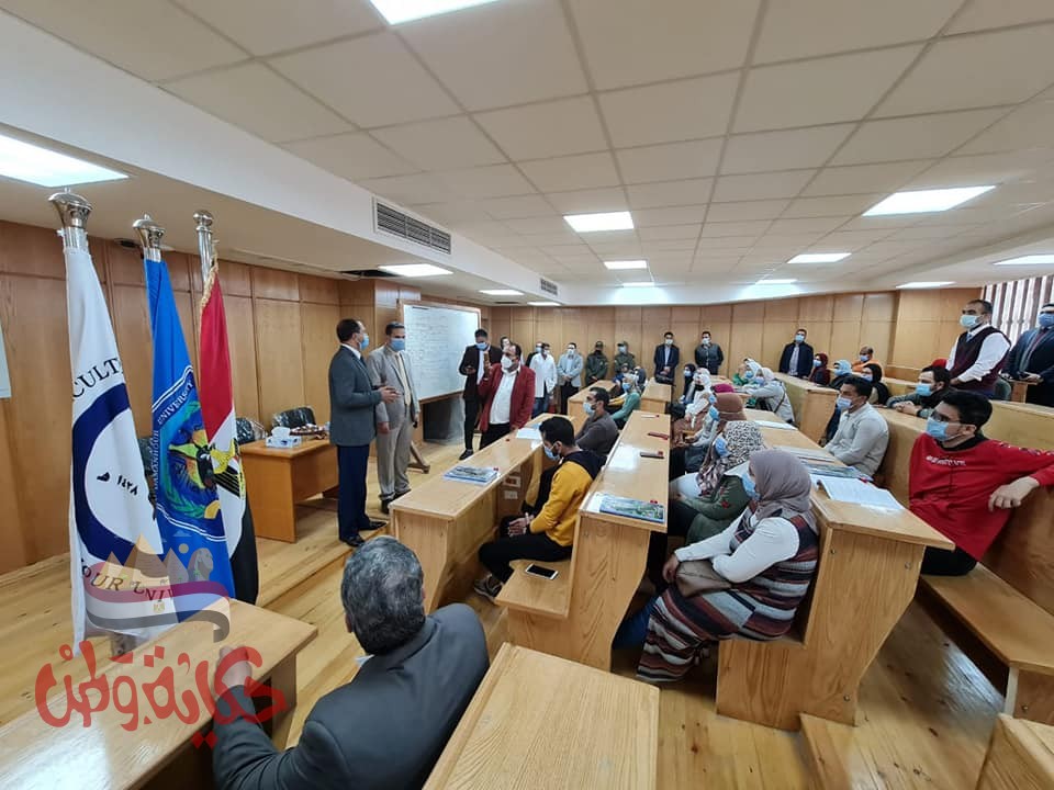 كما حث سيادته الطلاب على التعلم الحقيقى عن طريق تطبيق ما يدرسونه فى الواقع العملى والعمل مع الدراسة مما يعزز الجانب الأكاديمى لدى الطالب و يكسبه الخبرة التى تأهله لمتطلبات السوق وحاجة العمل والبحث عن التميز فى الأداء بالتطبيق العملى و زيادة الجانب البحثى و المعرفى الذى يخدم دراسته.