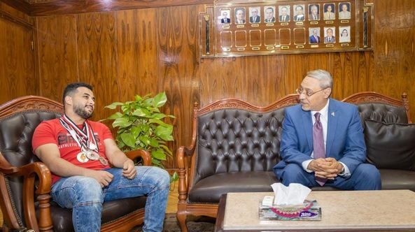 رئيس جامعة طنطا يستضيف البطل العالمي محمد الجمال لحصاده المركز الأول على مستوى الجامعات والثانى ببطولة أفريقيا فى رفع الأثقال: