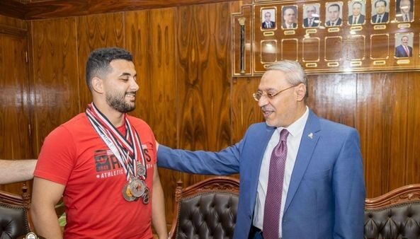رئيس جامعة طنطا يستضيف البطل العالمي محمد الجمال لحصاده المركز الأول على مستوى الجامعات والثانى ببطولة أفريقيا فى رفع الأثقال: