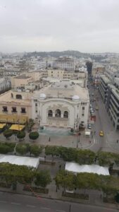 سرت في شوارعها الفسيحة وتمشيت في شارع الحبيب بورقيبة ساعات وساعات، وزرت أهم المعالم فيه، المسرح البلدي ومقهى باريس الذي ذكرني بمقهى ريش بشارع طلعت حرب في القاهرة، من حيث موقعه ومن حيث رواده، وجدار وزارة الداخلية الذي كتب عليه في نهايته “عاشت تونس حرة مستقلة”،”لا علماني ولا اسلامي، ثورتنا ثورة زوالي”.