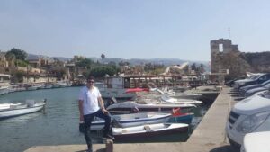 أقدم مدينة مسكونة في العالم “بيبلوس” تبعد عن بيروت شمالاً مسافة 37 كبلو متراً، تتكىء على البحر كعروس رائعة، بين الحداثة والقدم والتاريخ والتطور، تجدل جبيل العتيقة عراقتها، وتختزن آثاراً لا تقدر بثمن، جعلت اسمها يقترب من آذان كل الكون، هي مدينة الحرف والتاريخ والجمال، في كل ركن منها حكاية ولكل حكاية تاريخ، الحمامات الرومانية مفتوحة عند باب بيبلوس، والحجارة سميكة جداً ونظيفة، درج “سلم” البلدية مبني بشكل عقد طويل ورفيع، ينفرج آخره عن طبقة يختلط فيها القديم والجديد، فجبيل تحاول أن تحافظ على شكلها القديم، على حجارتها الرملية وأزقتها المتواضعة ومهنها القديمة، لكن الحاضر يضغط عليها في بعض الأماكن، السياح يأتون بالباصات يزورون قلعتها لساعات، ويجولون في الأحياء القديمة، يتناولون الغداء في مطاعم متناثرة بجانب تلاطم الموج وفي الشوارع المرصوفة بحجارة تتلائم مع المشهد التراثي العام، المطاعم مطعمة بما يغني التراث، الكراسي القش والخشبية تنتشر في المطاعم، والطاولات معظمها من الخشب القديم الذي لا يتعارض مع قدم الحجارة والأرصفة والأبواب والمحال، وهي مفروشة بألوان تريح البصر والفكر والروح، والقناطر تضفي جمالاً وجاذبية على المكان، أشهر مطعم في جبيل “كاف أحيرام” الذي يقدم القريدس “الجمبري” والأسماك الطازجة، وكان يتردد إلى المطعم بعض الرؤساء اللبنانيون مثل: سليمان فرنجية، ورينيه معوض، وكميل شمعون الذي كان يصل على يخت برفقة أصدقائه إلى المطعم، وأيضاً الرئيس الفرنسي جاك شيراك كان يأتي المطعم في زياراته للبنان.