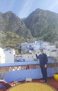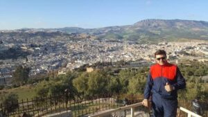 هي مدينة جبلية اسمها مركب ومعناه بالأمازيغية انظر للقمم، شف يعني انظر، شاون يعني قمم، مكثنا بها ثلاثة أيام استمتعنا جدا بجمالها، فكل بيوتها ترتدي لوناً أبيضاً ممزوجاً بالأزرق السماوي، تأسست عام 1471 م على يد علي بن راشد، لايواء مسلمي الأندلس بعد طردهم من طرف الأسبان، حيث كانت بمثابة قلعة للمجاهدين ضد الاستعمار، تتسم مدينة شفشاون بالسمات الجبلية، ذات التضاريس الصعبة والانحدارات المفاجئة والأودية المنخفضة والانكسارات الحادة، وقد عرفت وصول الفاتحين العرب كموسى بن نصير الذي بنى مسجداً له بقبيلة بني حسان شمال غربي شفشاون، وكذا طارق بن زياد الذي لا يزال هناك مسجد يحمل اسمه بقرية الشرفات، ومنذ الفتح الإسلامي للمغرب، أصبحت هذه المنطقة مركزاً لتجمع الجيوش، وفي عهد الأدارسة في القرن التاسع أصبحت المنطقة تحت حكم عمر بن إدريس الثاني الذي جعل من فاس عاصمة لإمارته، وشهدت المنطقة حروب ونزاعات مختلفة حتى تأسيس مدينة شفشاون في 1471م على يد مولاي علي بن راشد، لإيقاف الزحف البرتغالي على المنطقة، و تحتضن المدينة العتيقة لشفشاون مجموعة مهمة من المباني التاريخية التي تعكس إلى حد كبير الطابع التاريخي والحضاري الذي تكتسيه المدينة، ومن أحيائها حي السويقة وحي الأندلس وحي العنصر وحي الصبانين الذي يقع على طول الطريق المؤدية إلى رأس الماء، ويضم حي الصبانين مجموعة من الطواحين التقليدية التي كانت تستعمل لطحن الزيتون، كما يوجد به فرن تقليدي يجاور القنطرة التي توجد فوق نهر يسمى واد لفوارة، وحي منبع رأس الماء ويشكل منبع رأس الماء أساس بناء مدينة شفشاون، فهذا المنبع كان ولا يزال المزود الوحيد للمدينة بالمياه الصالحة للشرب والزراعة أيضاً، كما أنه شكل القوة المحركة للمدينة، وتتوسط المدينة ساحة وطاء الحمام وتعتبر ساحة عمومية بالمدينة العتيقة نظرا لمساحتها التي تبلغ 3000م كما أنها قطب المدينة التاريخي والسياحي باعتبار كل الطرق تؤدي إليها، صممت في البداية هذه الساحة لتكون مقراً لسوق أسبوعي يؤمه سكان الضواحي والمدينة، تغيرت وظيفة الساحة حالياً من سوق أسبوعي إلى ساحة سياحية واحتلت المقاهي مكان دكاكين البيع، وبها يوجد المسجد الأعظم والقصبة وفيها تقام المهرجنات، والقصبة هي منطقة محاطة بسور تتوسطه عشرة أبراج، وتجسد طريقة بنائها النمط الأندلسي في العمارة، يحتوي فضائها الداخلي على حديقة كبيرة مزينة بحوضين، في حين يحتل المتحف الاثنوغرافي الجزء الشمالي الغربي من القصبة، يرجع تاريخ بناء المبنى الذي يأوي المتحف إلى نهاية القرن 17م وقد بناه علي الريفي والي السلطان مولاي إسماعيل على المنطقة، يتخذ هذا المبنى تصميم المنازل التقليدية المغربية التي تتوفر على ساحة داخلية مفتوحة تتوسطها نافورة مائية، محاطة بأروقة وغرف بالإضافة إلى طابق علوي.