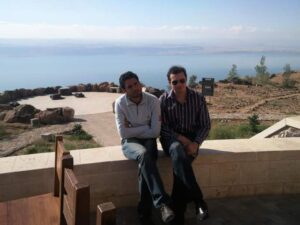 وفي اليوم الرابع خرجنا صباحاً إلى البحر الميت والذي كان يسمى قديماً “ببحيرة لوط”وهو بحيرة يعتبر سطحها أعمق نقطة في العالم على اليابسة حيث يقع على عمق 417 متر تحت سطح البحر ويقع ما بين الأردن وفلسطين، وقد أطلق عليه اسم “البحر الميت” بسبب عدم قدرة الكائنات الحية أو الاسماك على العيش فيه لكون مياهه شديدة الملوحة، فهي تقارب عشرة أضعاف ملوحة المحيطات، ويتغير هذا اعتماداً على العمق، كما لا تعيش فيه الكائنات الحيه بالرغم من وجود بعض أنواع البكتيريا والفطريات الدقيقة فيه، يبلغ طول البحر الميت 37 كيلومتراً وعرضه خمسة عشر كيلومتر، ويعتبر من مناطق السياحة العلاجية الأكثر نشاطاً في المنطقة حيث يقال أن الأملاح الموجودة به تشفي كثيراً من الأمراض الجلدية مثل الصدفية والحساسيات الجلدية المتنوعة، وأيضاً يعتبر من المراكز الاقتصادية التي تبنى عليها كثير من الصناعات مثل مصانع الملح ومصانع المستحضرات التجميلية والعلاجية وقد أقيمت الكثير من المنتجعات على شاطئه، وقد رشح ليكون أحد عجائب الدنيا الطبيعية في نطاق البحيرات، ويهدد البحر الميت بالزوال بسبب انخفاض كميات الماء التي تصب فيه، حيث أن سحب المياه من نهر اليرموك ونهر الأردن من قبل إسرائيل والأردن، قلل بشكل حاد كميات المياه التي تصل إلى البحر الميت مما يهدده بالجفاف، ومن المشاريع المقترحة لإنقاذه مشروع شق قناة من البحر الأحمر أو البحر الأبيض المتوسط لتسييل المياه المالحة إلى البحر الميت، ولكن هذا المشروع مختلف عليه بسبب خشية الخبراء من تداعيات غير متوقعة قد تكون له على البيئة وعلى تركيبة مياه البحر الميت، وبسبب تكاليفه الهائلة، في غضون الخمسين سنة الماضية تقلص البحر بنسبة 30% ومن المتوقع اختفائه خلال قرن، وتحيط بالبحر جبال عالية صعدنا أحدها بالسيارة وكان في أعلى قمته مطعم يطل على مناظر من أجمل المناظر الطبيعية حيث تناولنا فيه غداءنا قبل أن تنجه لمدينة مادبا.