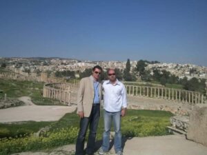 وفي اليوم الخامس خرجنا صباحاً في جولة سياحية إلى جرش التي تبعد عن العاصمة عمان حوالي 48 كم وترتفع عن سطح البحر قرابة 600 م. يحدها من الجنوب عمان، ومن الغرب مدينة عجلون، ومن الشمال مدينة اربد ثاني اكبر المدن الأردنية، مرت فيها عصور اليونان والرومان ثم عصر الفتوحات الإسلامية، وغالبية سكانها من الشركس والأرمن.