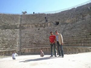 في اليوم الثاني خرجنا صباحاً بجولة في العاصمة عمان، وهي أكبر مدن المملكة من حيث المساحة والسكان فعدد سكانها 2 مليون نسمة، وتقع في وسط المملكة في منطقة تكثر فيها الجبال وتمتد فوق 20 جبلاً، والتي تُعتبر المركز التجاري والإداري للأردن وقلبه الاقتصادي والتعليمي، وعمان مدينة قديمة أقيمت على أنقاض مدينة عرفت باسم “ربة عمون” ثم “فيلادلفيا” ثم “عمان” اشتقاقاً من “ربة عمون” واتخذها العمونيون عاصمة لهم وقد أنشئت المدينة على سبعة تلال، وكانت مركزاً للمنطقة، يعود تاريخ المدينة إلى أكثر من 7000 سنة قبل الميلاد، ومرت عليها حضارات عديدة دلت عليها الآثار المنتشرة بأرجاء المدينة فالمدرج الروماني هو أحد الآثار المتبقية من عهد الرومان وجبل القلعة بآثاره المختلفة يدل على الحضارات الإغريقية والرومانية والعمونية والأموية.