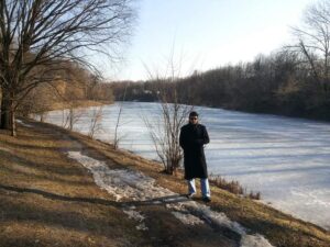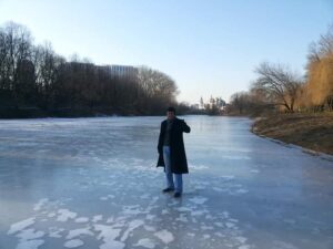 فقد كان النهر متجمداً، وعلى الفور أيقظت صديقي وطلبت منه أن ينهض سريعاً كي ننزل ونشارك الأطفال مرحهم، وسرنا على مياه النهر المتجمدة،
