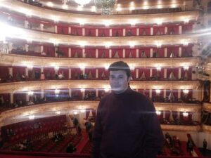 (وكان من أحلامي أن أزور موسكو ومن أمنياتي أن أحضر عرض بمسرح البولشوي، والحمد لله في زيارتي الأولى لموسكو في 2014 حققت حلم من أحلامي وزرتها، وحققت أمنية من أمنياتي وحضرت أوبريت “الملاك الناري” يارب تحقق أحلام وأمنيات الجميع).