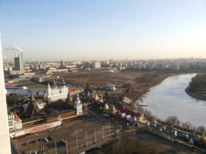 من الطابق 23 ومن نافذة غرفتنا التي كانت تطل على رافد أوكا من نهر فولغا 10 صباحاً بتوقيت موسكو، لمحت أطفالأ يلعبون ويمرحون ويتزلجون فوق النهر ويقطعونه ذهاباً وإياباً! دققت النظر أكثر لأتأكد أن ما أره حقيقي، وفتحت النافذة وكان الجو شديد البرودة في الخارج وغرفتنا كانت دافئة، وتأكدت أن ما أراه صحيحاً.