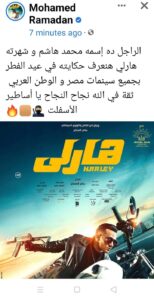 شارك النجم محمد رمضان متابعيه على الفيسبوك البوستر الدعائي لفيلمه القادم و المنتظر عرضه خلال عيد الفطر المبارك (هارلي)، وقد صرَّح بإسم الشخصية التي يلعبها خلال أحداث الفيلم ، حيث قال : (الراجل ده إسمه محمد هاشم و شهرته هارلي هنعرف حكايته في عيد الفطر بجميع سينمات مصر و الوطن العربي, ثقة في الله نجاح النجاح يا أساطير الأسفلت)