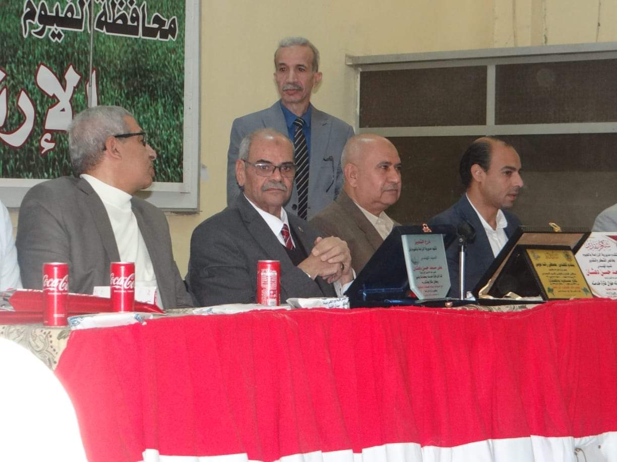 بقاعة الإرشاد الزراعي بحضور الأستاذ الدكتور أحمد إبراهيم مدير محطة البحوث الاقليمية بالفيوم والدكتور علاء شيلابي نقيب الزراعيين بالفيوم والمهندس حجاج مدير عام الإصلاح الزراعي ولفيف من قيادات الزراعة ورؤساء الأقسام ومديري الادارات الزراعية والعاملين بالمديرية والإدارات الزراعية بالمراكز والزملاء المحالين على المعاش