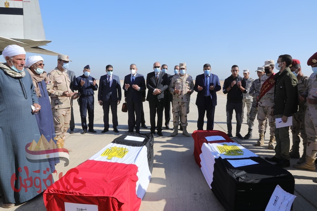محافظي سوهاج وقنا يستقبلان جثامين شهيدي الوطن بمطار سوهاج العسكري