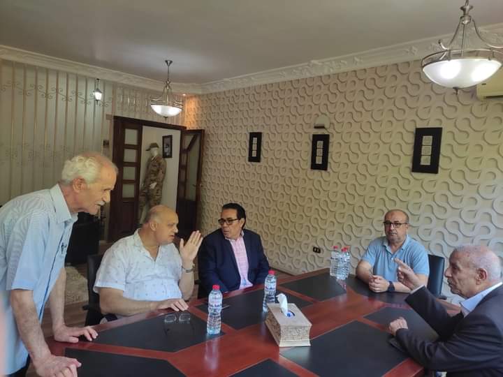 الحاج أحمد النجار رئيس مجلس إدارة الشركة، والمهندس محمد النجار مدير عام الشركة شركه النجار للملابس يستقبل السيد رئيس النقابة العامة للعاملين بالغزل والنسيج والأمين العام للاتحاد الدولي والعربي السيد الأستاذ عبد الفتاح ابراهيم والمهندس خالد الفقي، رئيس النقابة العامة للعاملين بالصناعات الهندسية والمعدنية والكهربائية