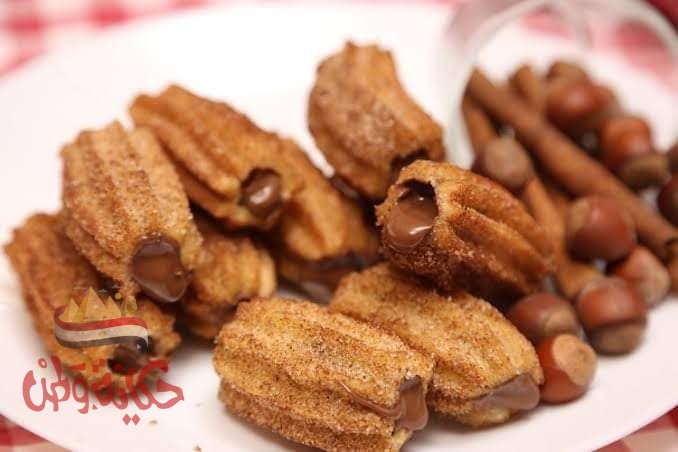 علي النار نضع الماء والسكر والزبدة حتي يذوبوا ثم نضيف الدقيق ونقلب جيدا حتي يصبح لدينا عجينة متماسكة ثقيلة ثم توضع في بولة حتي تبرد تماما ثم نضيف البيض ونقلب جيدا ونعجنها معها ثم تشكل مثل بلح الشام داخل الأقماع الخاصة به ثم نضع كل قطعة فوق ورق زبدة ثم تقلي في زيت غزير بورق الزبدة ثم نزيله من الزيت ثم علي النار نضع الشكولاتة والسكر واللبن ونقلب جيدا ثم نضيف النشا ونقلب جيدا ثم يقدم بجانب التشوروز وبالف هنا