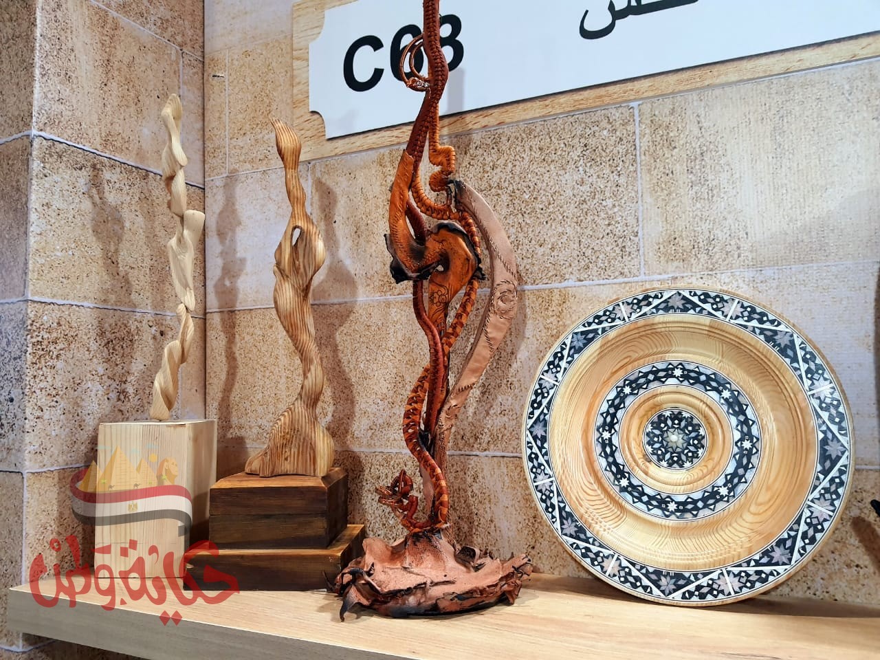، الي جانب العديد من المشغولات النسجية متمثلة فى لوحات نسجية للاعب المشهور محمد صلاح ولوحة أخرى إحتوت على عناصر حيوانية بطريقة تجريدية، وشنط نسيج وعرائس نسجية، كما إحتوى المعرض على ملابس مطبوع عليها صور لوجوه أفريقية بالصوف، وملابس أخرى صبغت بطريقة العقد والربط والباتيك، واحتوى ايضا مشغولات معدنية حلى بالفضة والنحاس، وشنط جلدية رائعة مصنوعة من الجلد الطبيعى عليها شغل تضفير وتدكيك ورسومات غائرة وبارزة، وأيضا على مجسمات خشبية وطبق خشب مطعم بالأرابيسك.