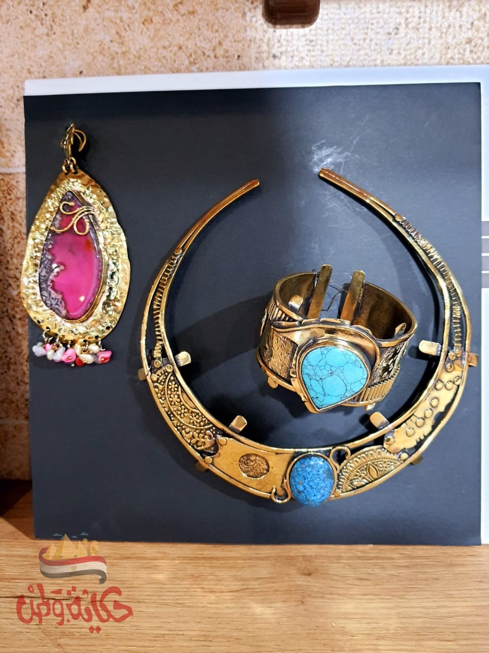 ، الي جانب العديد من المشغولات النسجية متمثلة فى لوحات نسجية للاعب المشهور محمد صلاح ولوحة أخرى إحتوت على عناصر حيوانية بطريقة تجريدية، وشنط نسيج وعرائس نسجية، كما إحتوى المعرض على ملابس مطبوع عليها صور لوجوه أفريقية بالصوف، وملابس أخرى صبغت بطريقة العقد والربط والباتيك، واحتوى ايضا مشغولات معدنية حلى بالفضة والنحاس، وشنط جلدية رائعة مصنوعة من الجلد الطبيعى عليها شغل تضفير وتدكيك ورسومات غائرة وبارزة، وأيضا على مجسمات خشبية وطبق خشب مطعم بالأرابيسك.