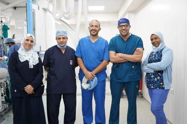 واستطاع الفريق الطبى إجراء القسطرة بقيادة الدكتور ياسر صادق خبير تغيير الصمام الأورطى بالقسطرة ومدرس القلب ومدير وحدة قسطرة القلب بالمستشفى، ومن خلال مجهودات مميزة قام بها الدكتور أحمد جعفر رئيس قسم القلب والاوعية بكلية طب جامعة حلوان، وأعضاء هيئة التدريس وبمعاونة فريق من قسم جراحة الاوعية، ود.شريف عمر مدرس جراحة الأوعية وجراحة القلب والصدر، ود.أحمد طعيمة مدرس جراحة القلب والصدر.